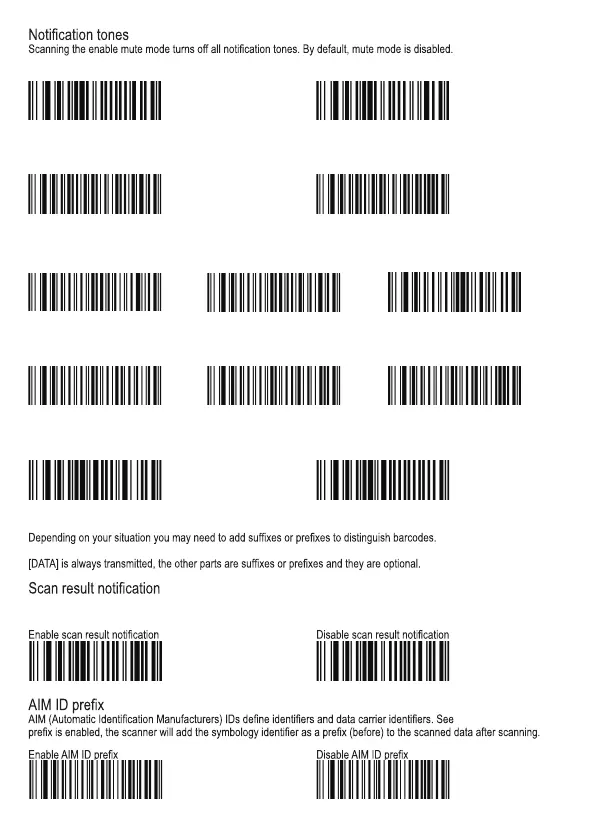 appended to the barcode data as the most left character. Note: This function is invalid in USB DATAPIPE MODE.