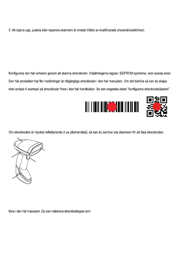 bort från streckkoden, så streckkoden kan läsas av enkelt och korrekt.
