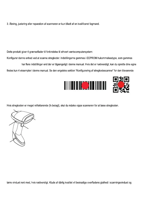 scanneren længere væk fra stregkoden, så stregkoden kan læses nemt og korrekt.
