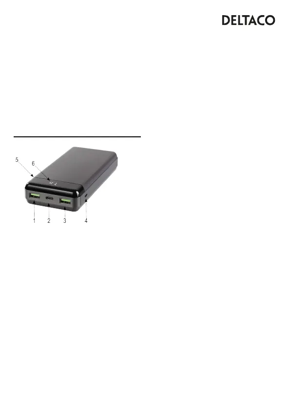 2. USB-C väljundport (3 A, max 60 W).