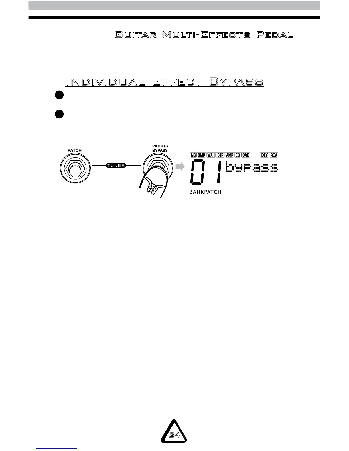 Press the PATCH+/BYPASS switch, the effect is bypassed.