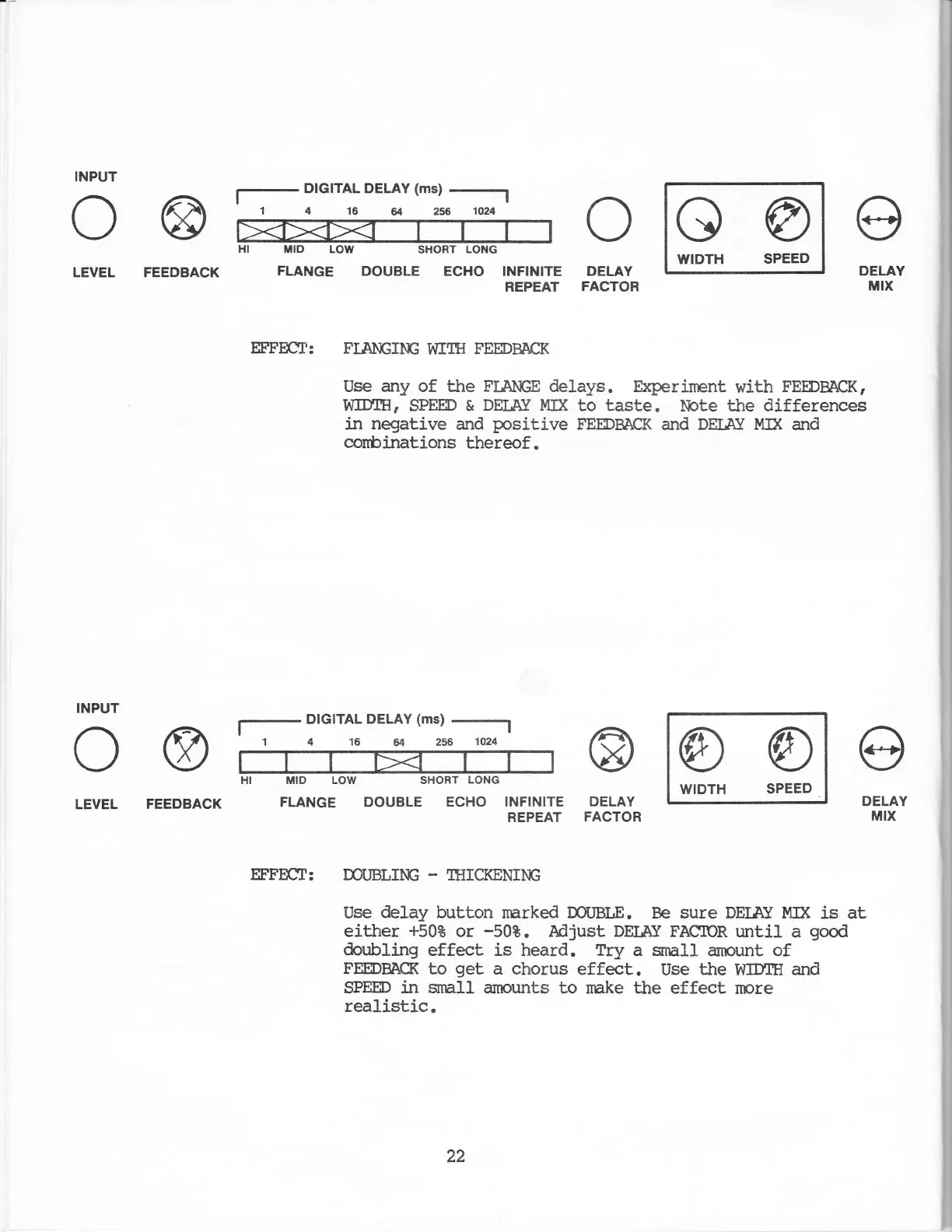 DeltaLab EFFECTRON II - Flanging with Feedback Setup; Doubling and Thickening Setup