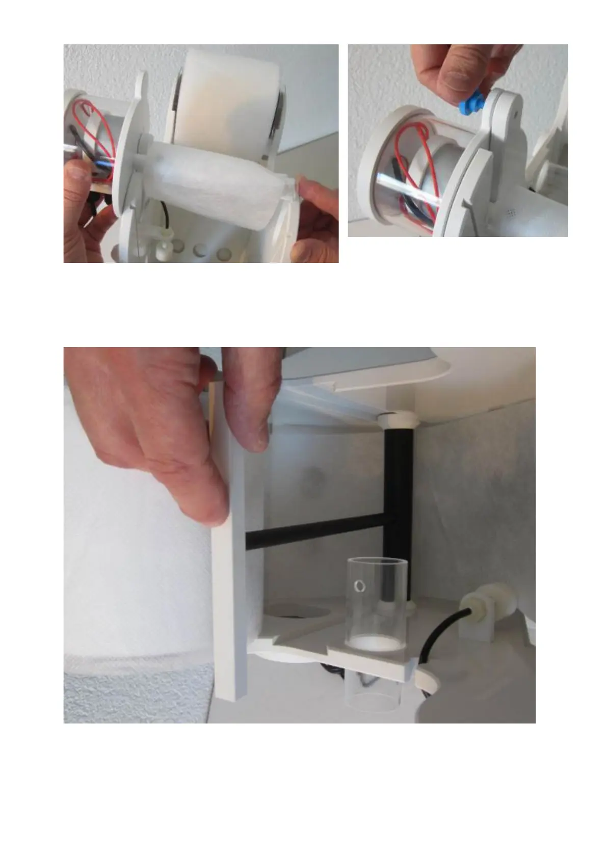 Insert the take-up roll in the housing and fix the motor with the screw