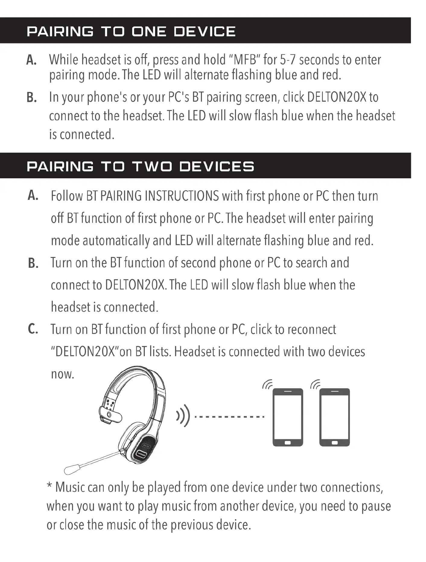 Delton 20x - Bluetooth Pairing Procedures; Pairing to One Device; Pairing to Two Devices