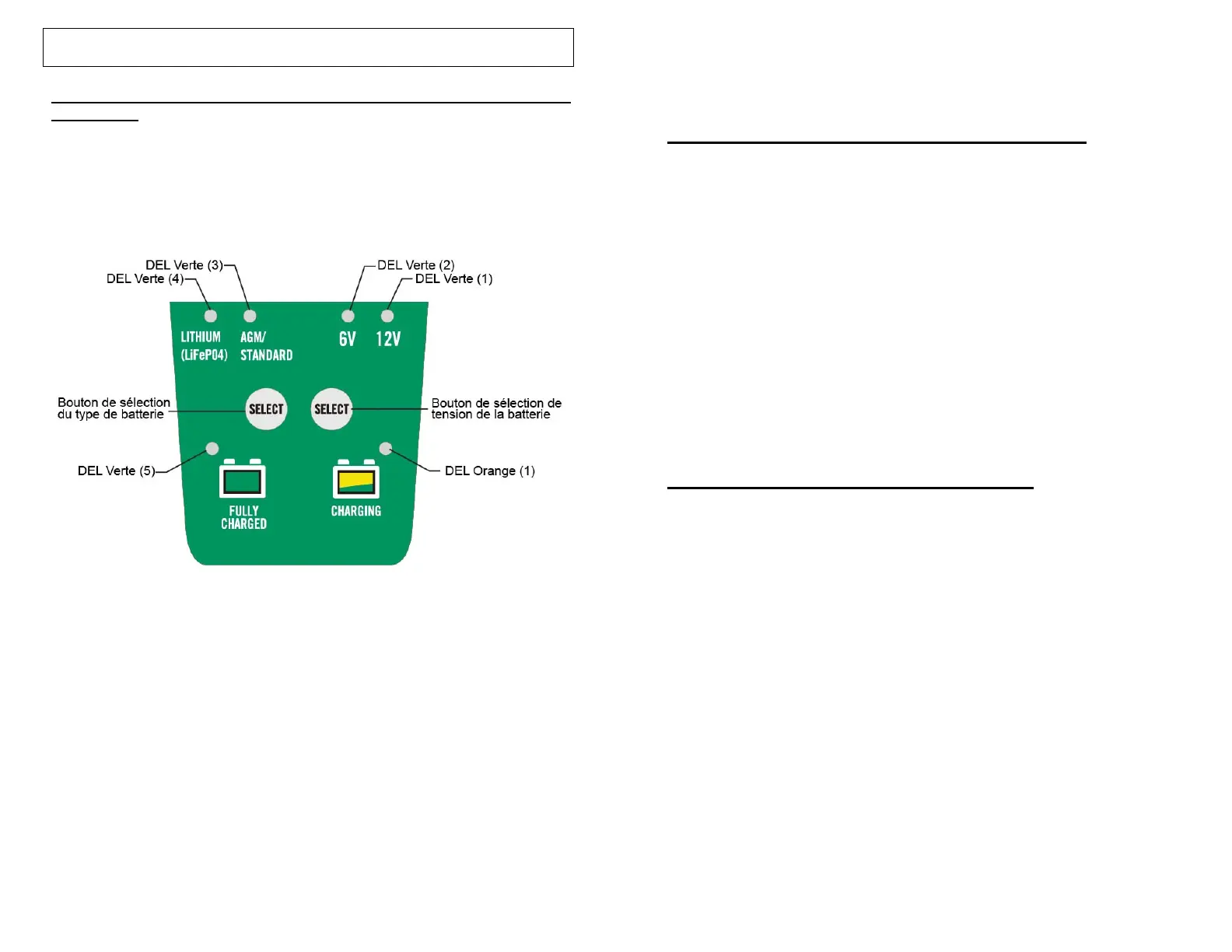 connecté à la batterie, la sélection de tension (12 V ou 6 V) ne peut pas