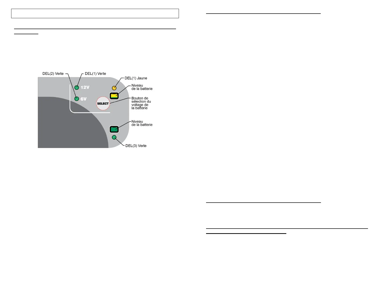 connecté à la batterie, la sélection de tension (12 V ou 6 V) ne peut pas