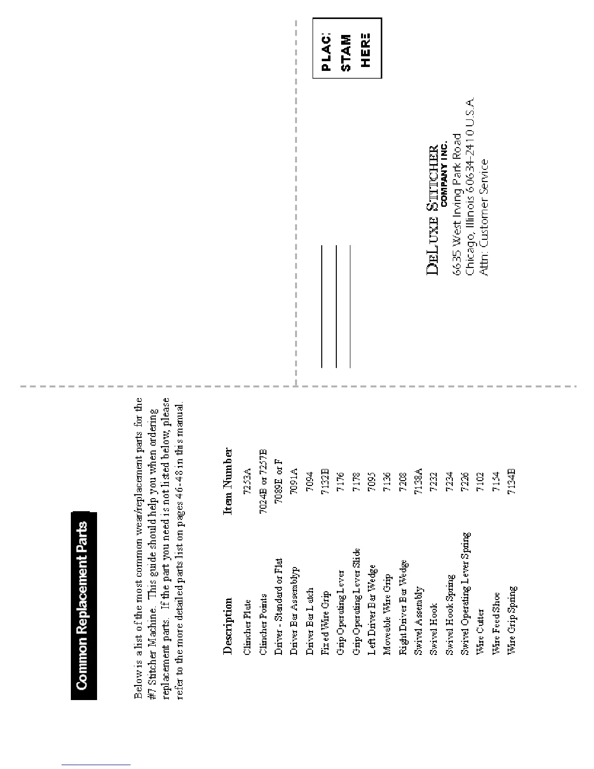DeLuxe Stitcher 7AW - Common Replacement Parts List