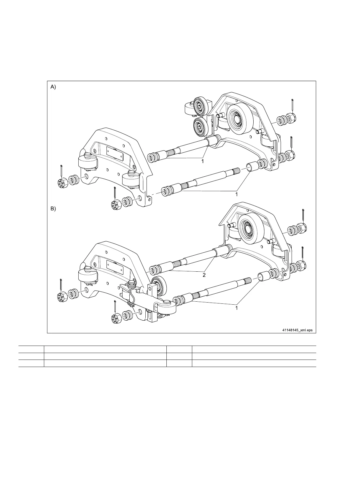 A) Load trolley, max. load capacity 270 kg 1 Spacer sleeve for load trolley or tractor trolley