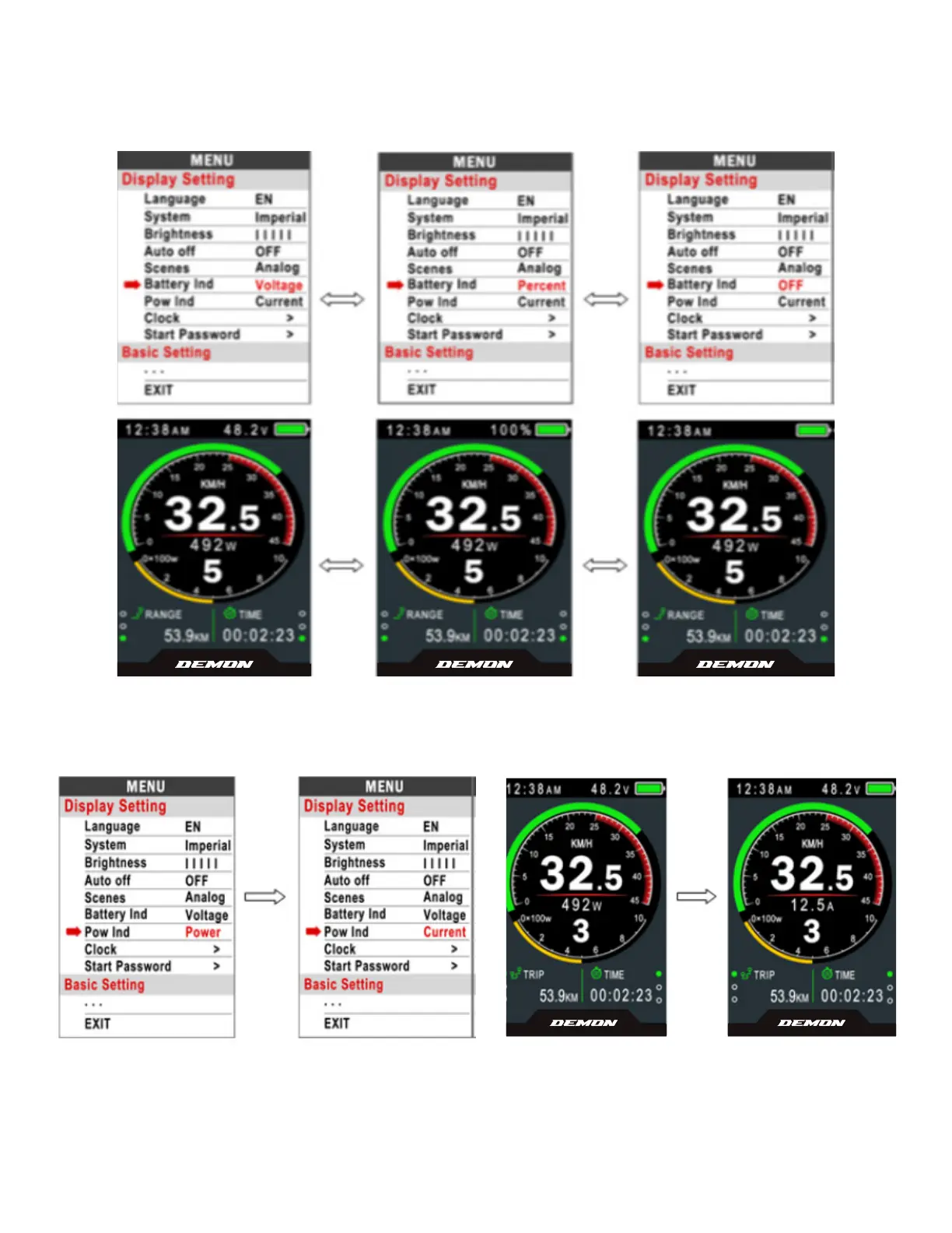 DEMON ELECTRIC 6IX - TFT Display Settings: Indicators