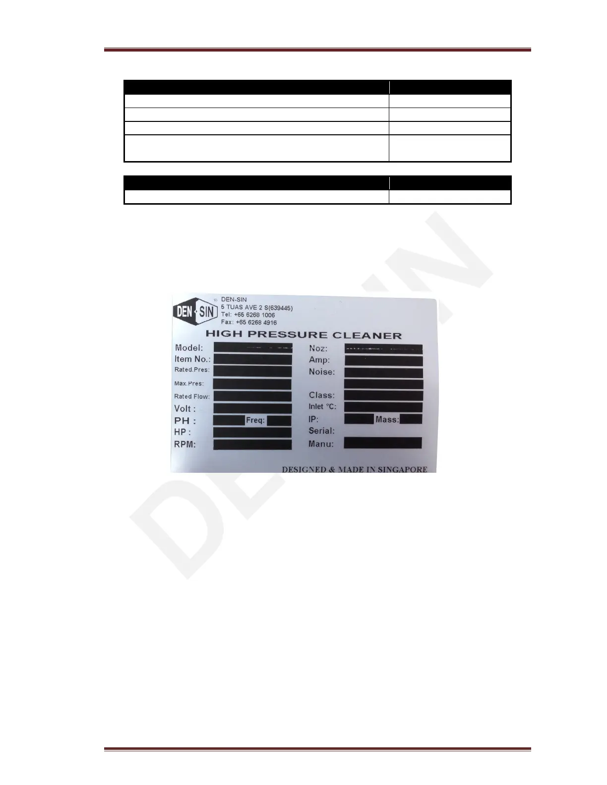 Den-Sin C-250E - Available Accessories; Accessories; Repair Kits; ID-Plate