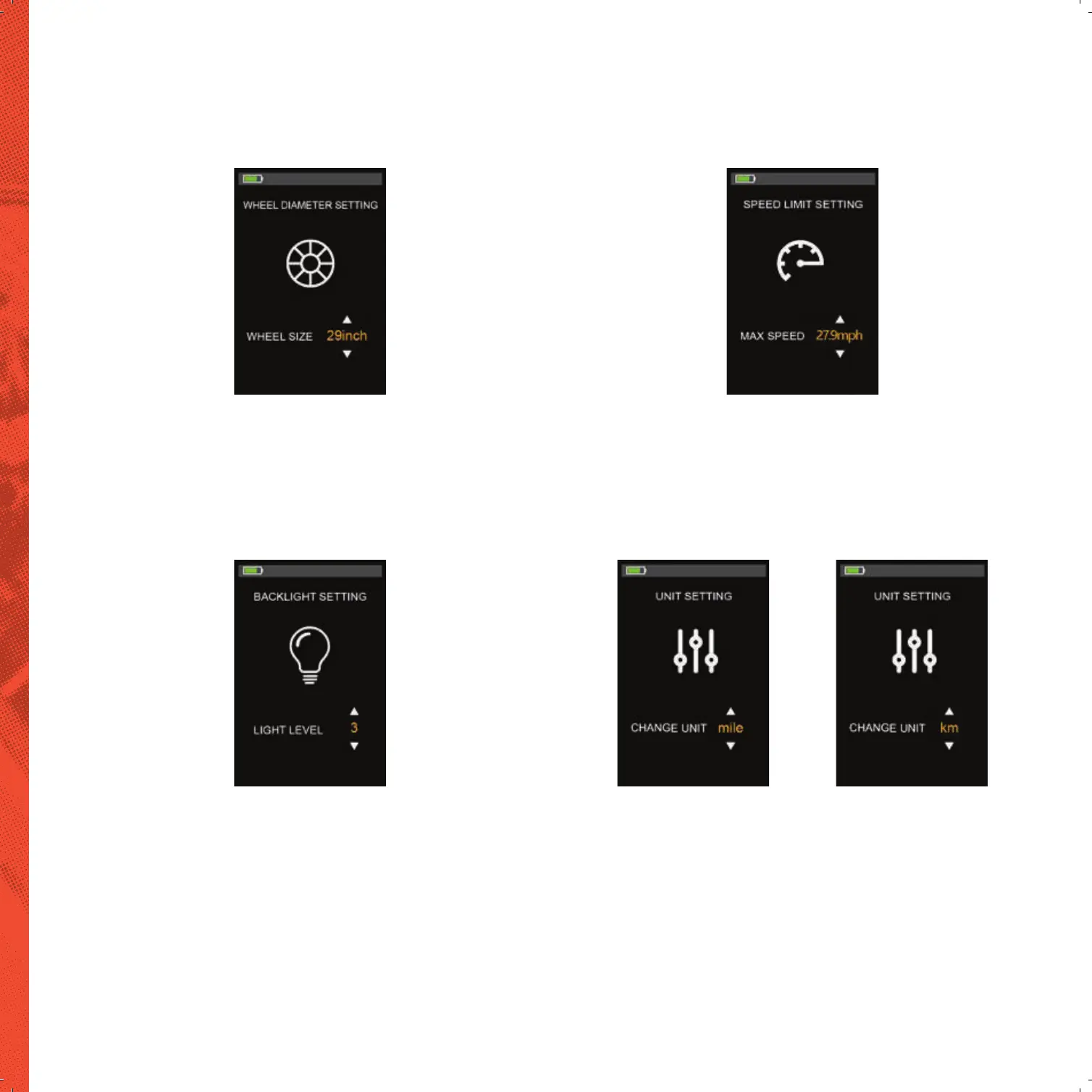 Wheel Size setting Speed Limit setting
