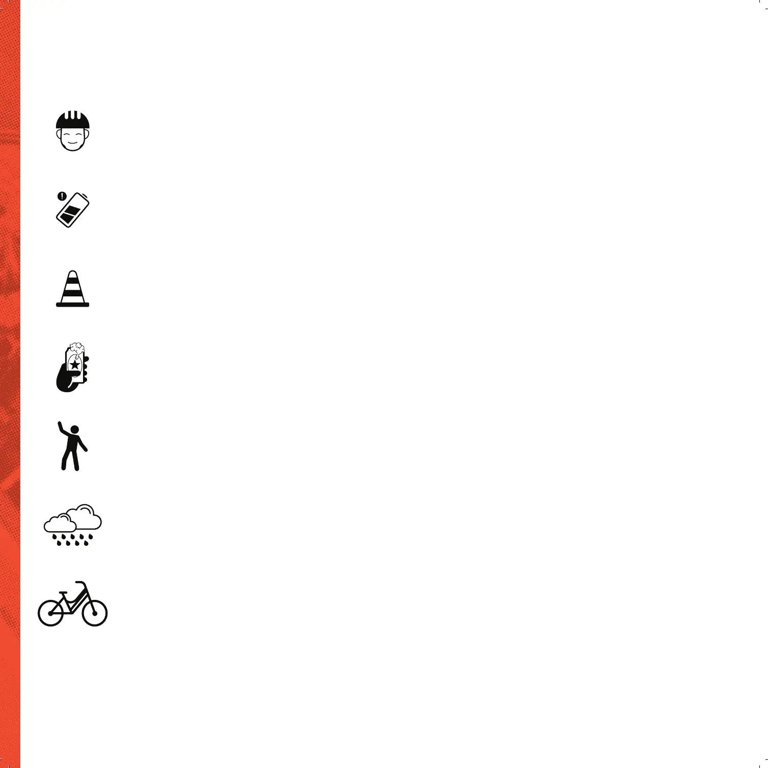 DO NOT ride under wet conditions. The electric bike may slide from under your feet