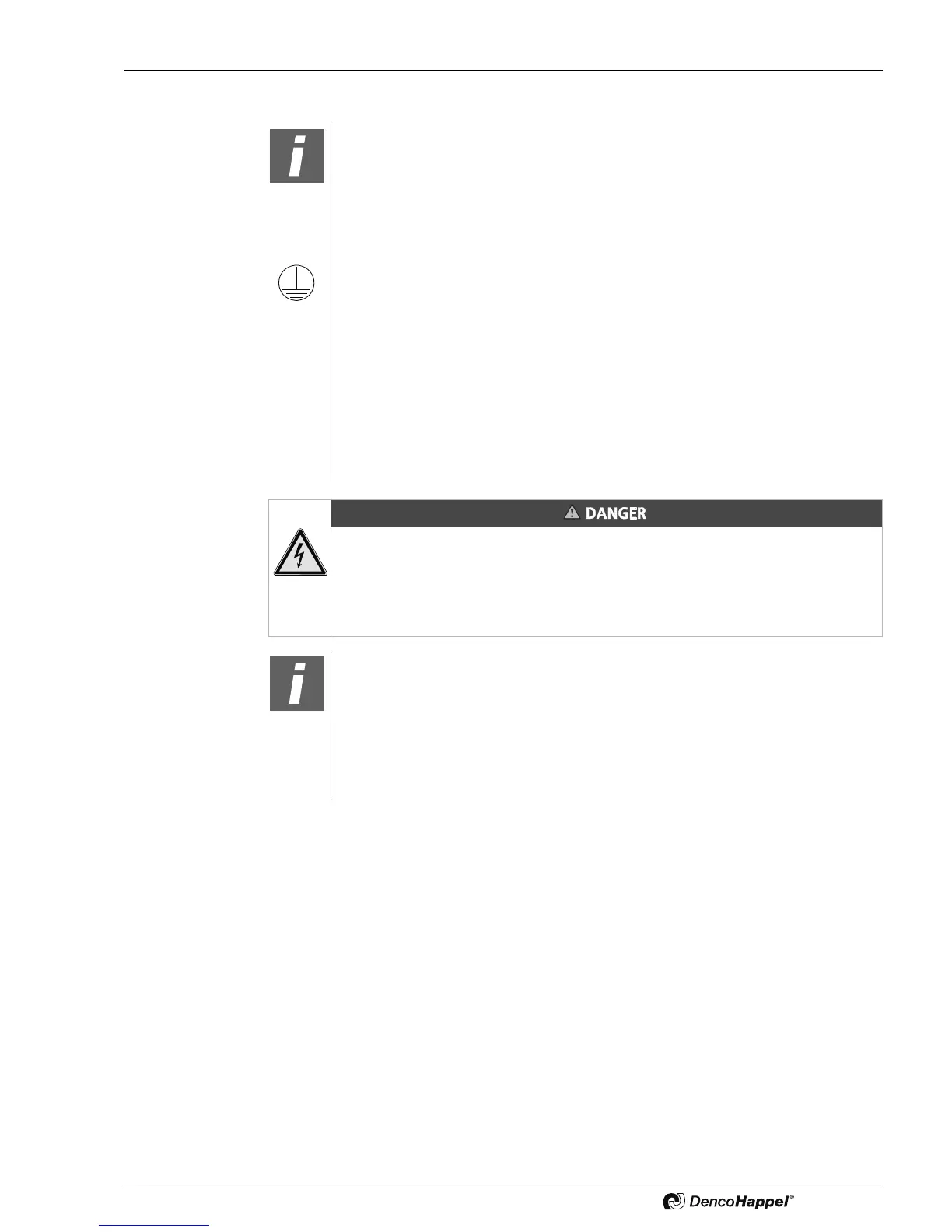 Ensure earthing and potential equalization of the individual sections and all con-