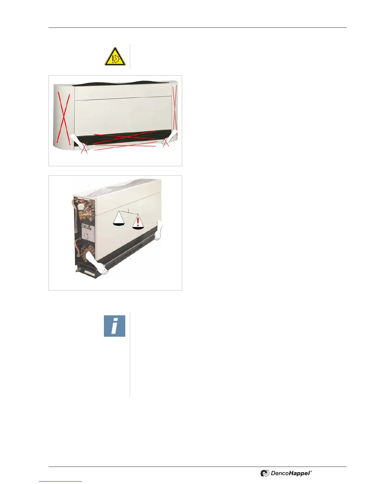 – Never lift the unit completely off the pallet. Only grip the unit by the base frame,