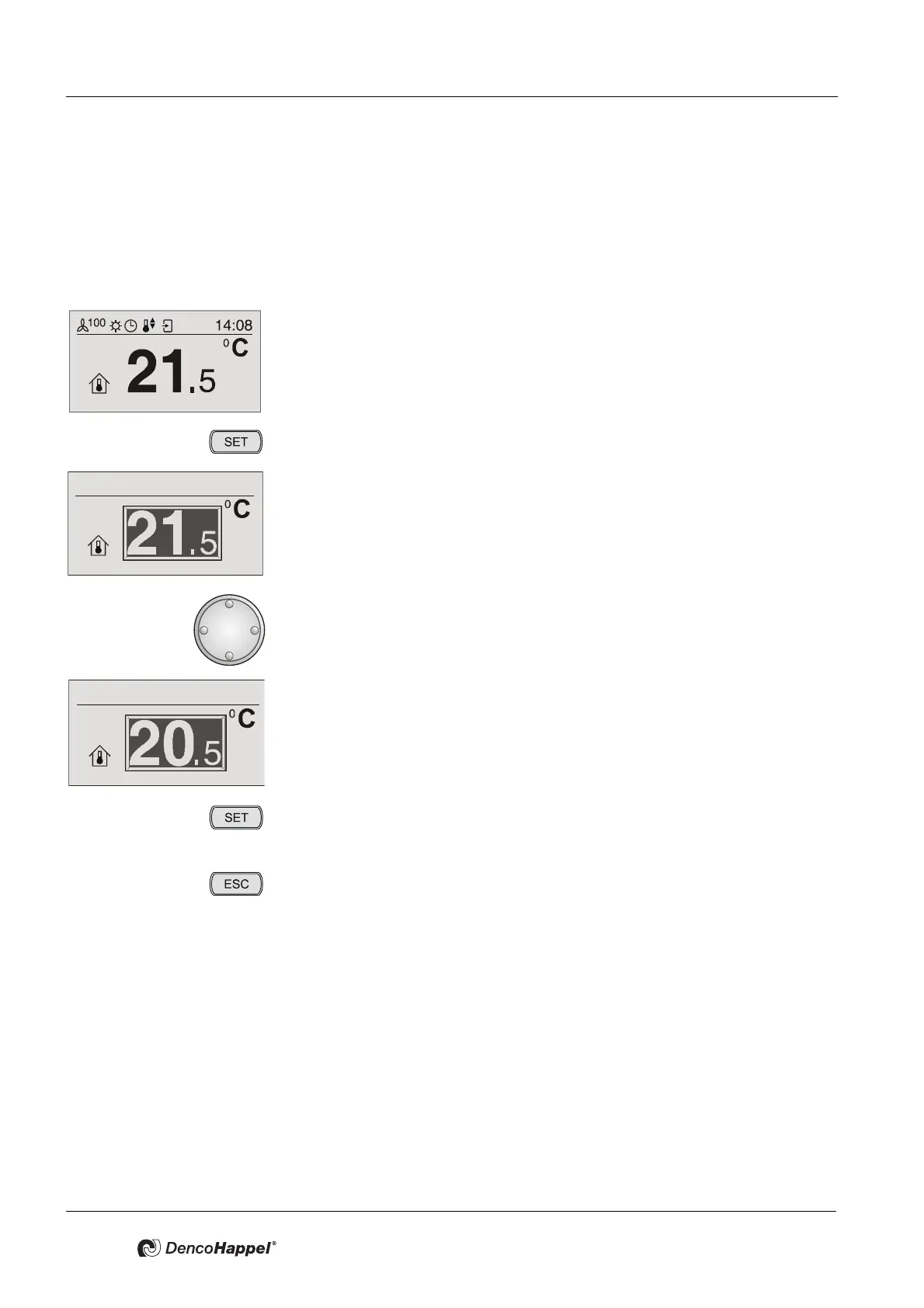 9 The new setpoint value is saved. You can see the basic display with the