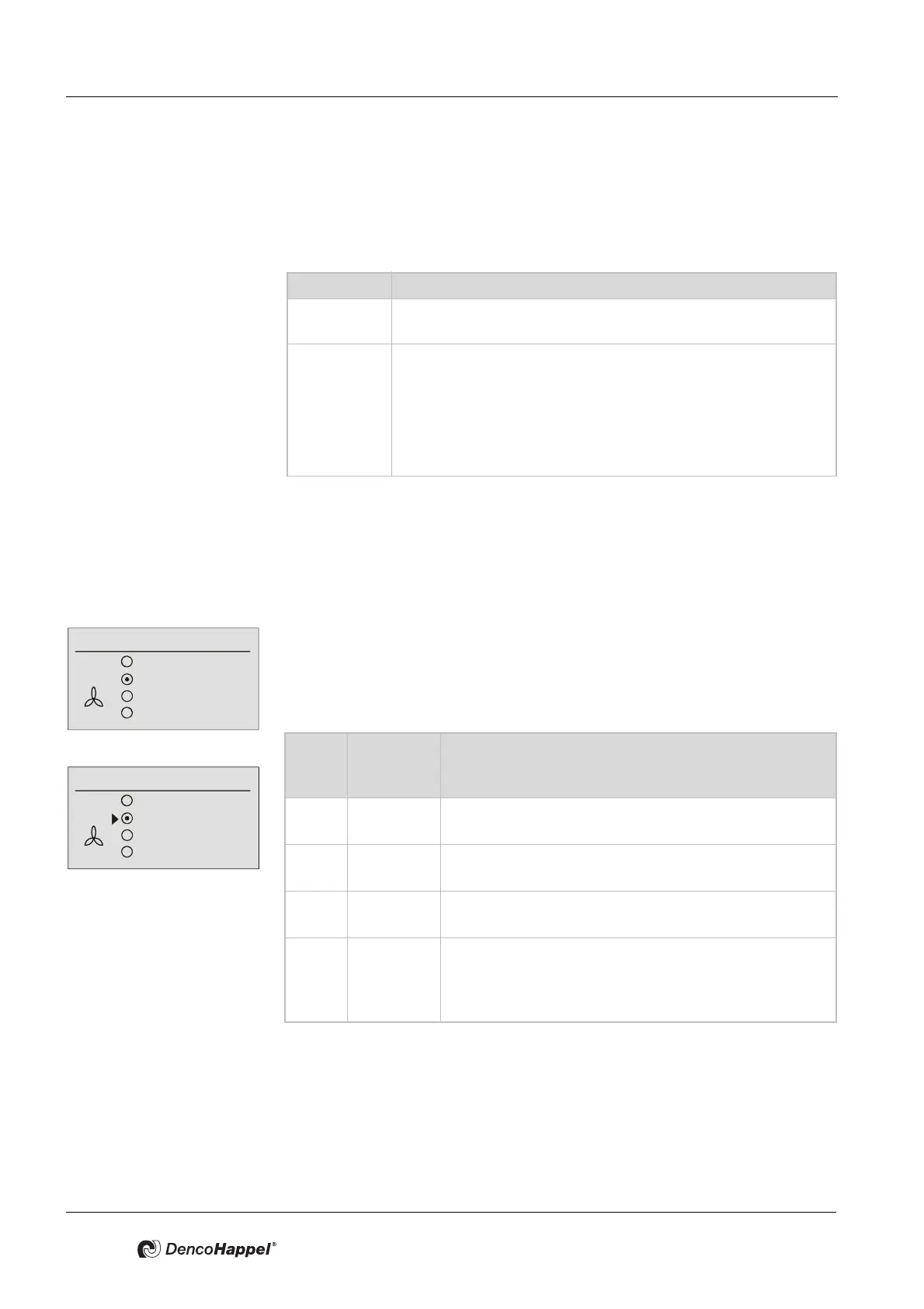 The menu shown by the air handling units depends on the selected type of fan