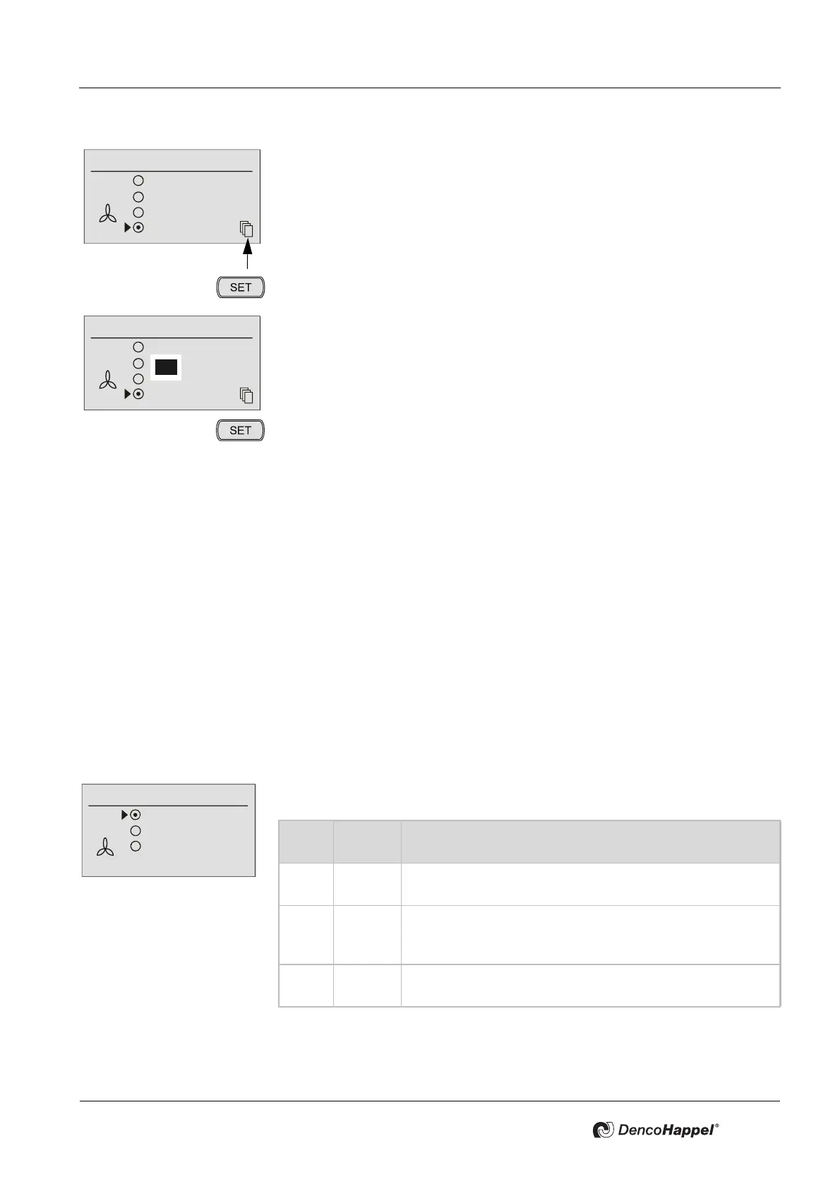 – Manual fan speed setting with control panel (also see Chapter 7.9.1 Menu set-