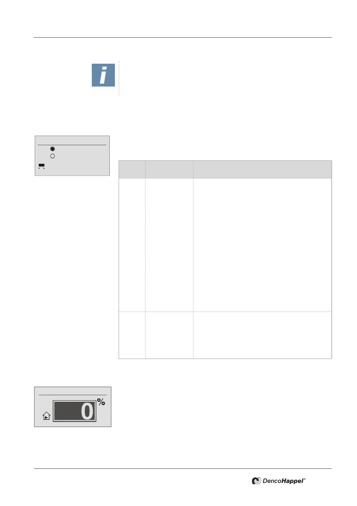 In the “Mixing-air damper position” submenu you can enter in percent the position