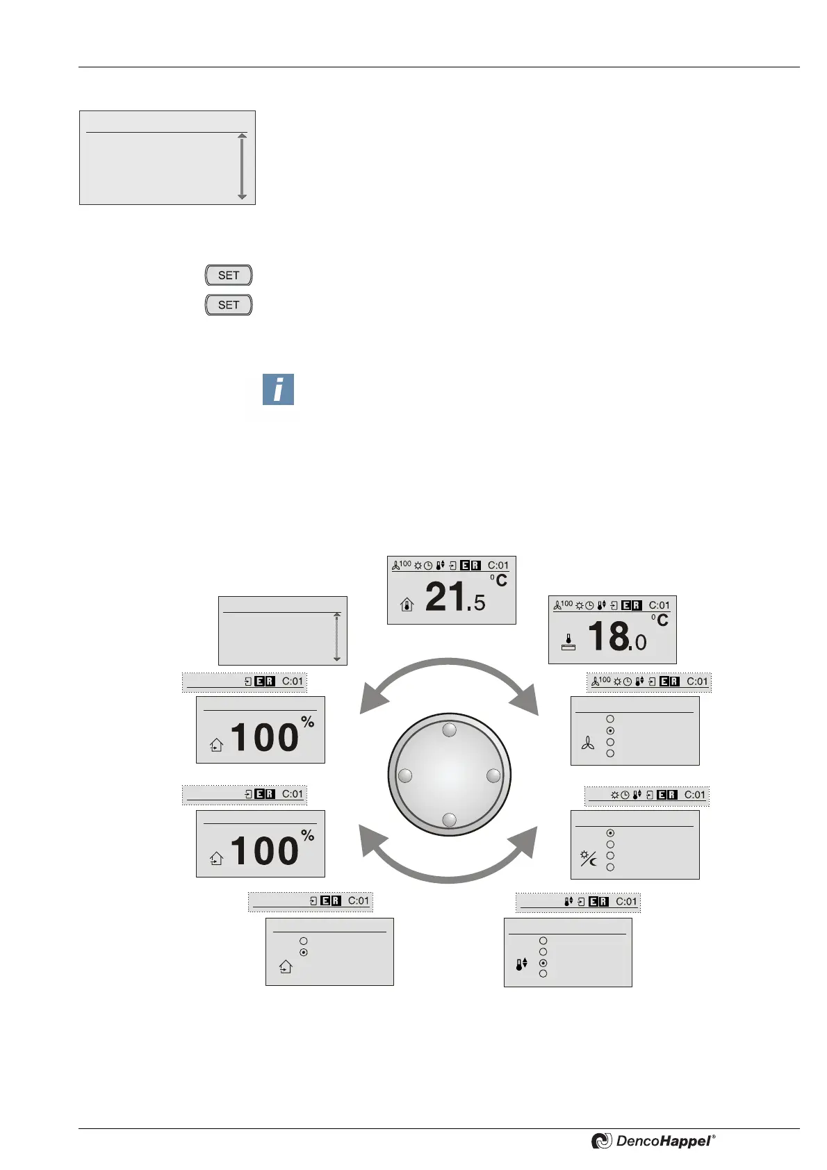 If the basis menu (room temperature setpoint) followed by all other basic menus