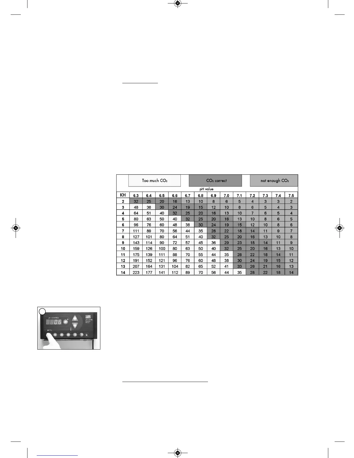 The pH-Con trol ler sets pH 7,0 au to ma ti cal ly (= 20 mg/l CO