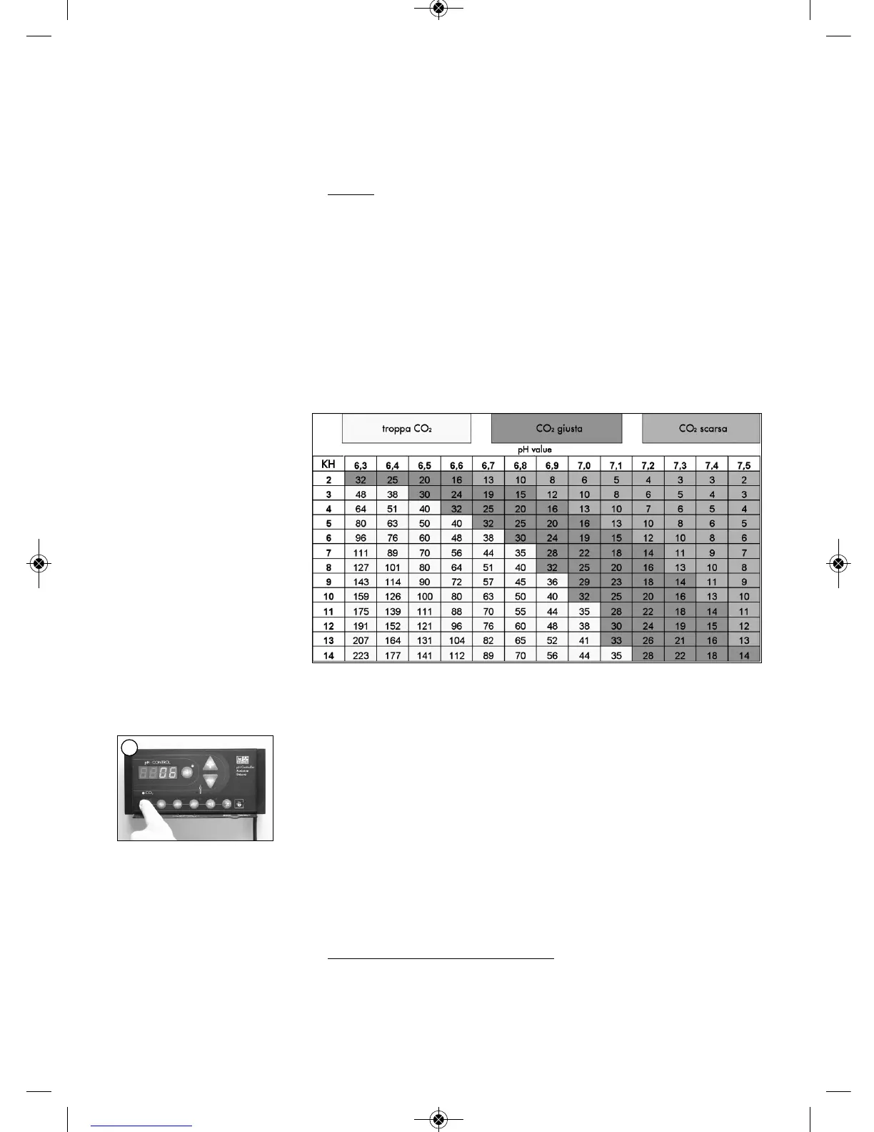 Il pH-Con trol ler im pos ta au to ma ti ca men te il pH a 7,0 (= 20 mg/l di CO