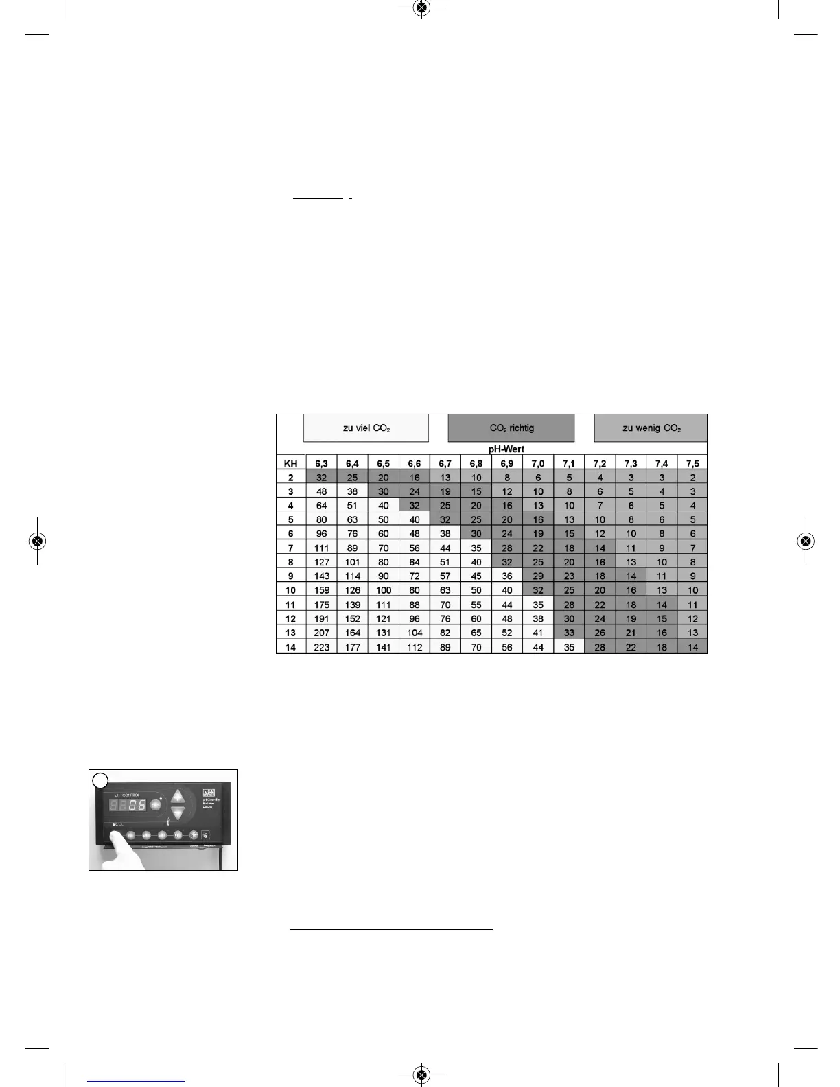 Der pH-Con trol ler stellt au to ma tisch pH 7,0 ein (= 20 mg/l CO