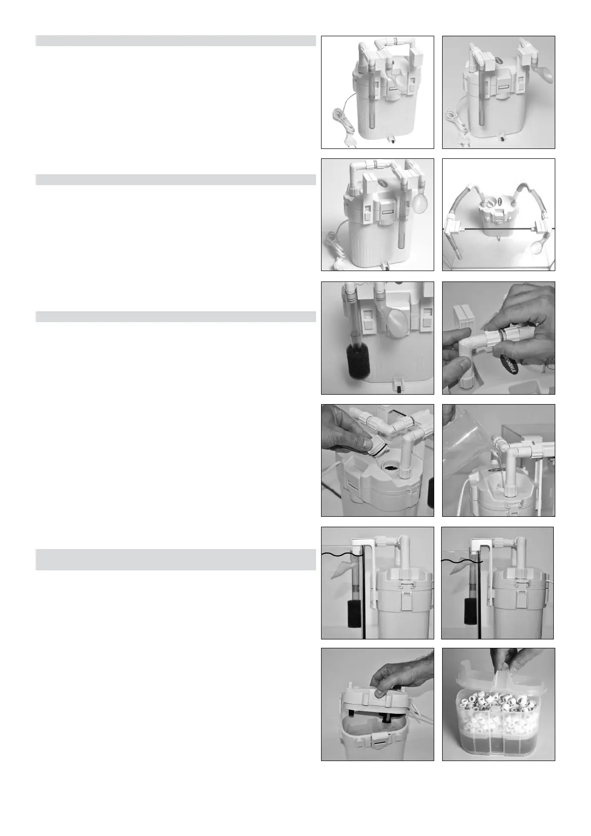 • Zet de filtermanden in de correcte volgorde (spons onder, pijpjes boven)