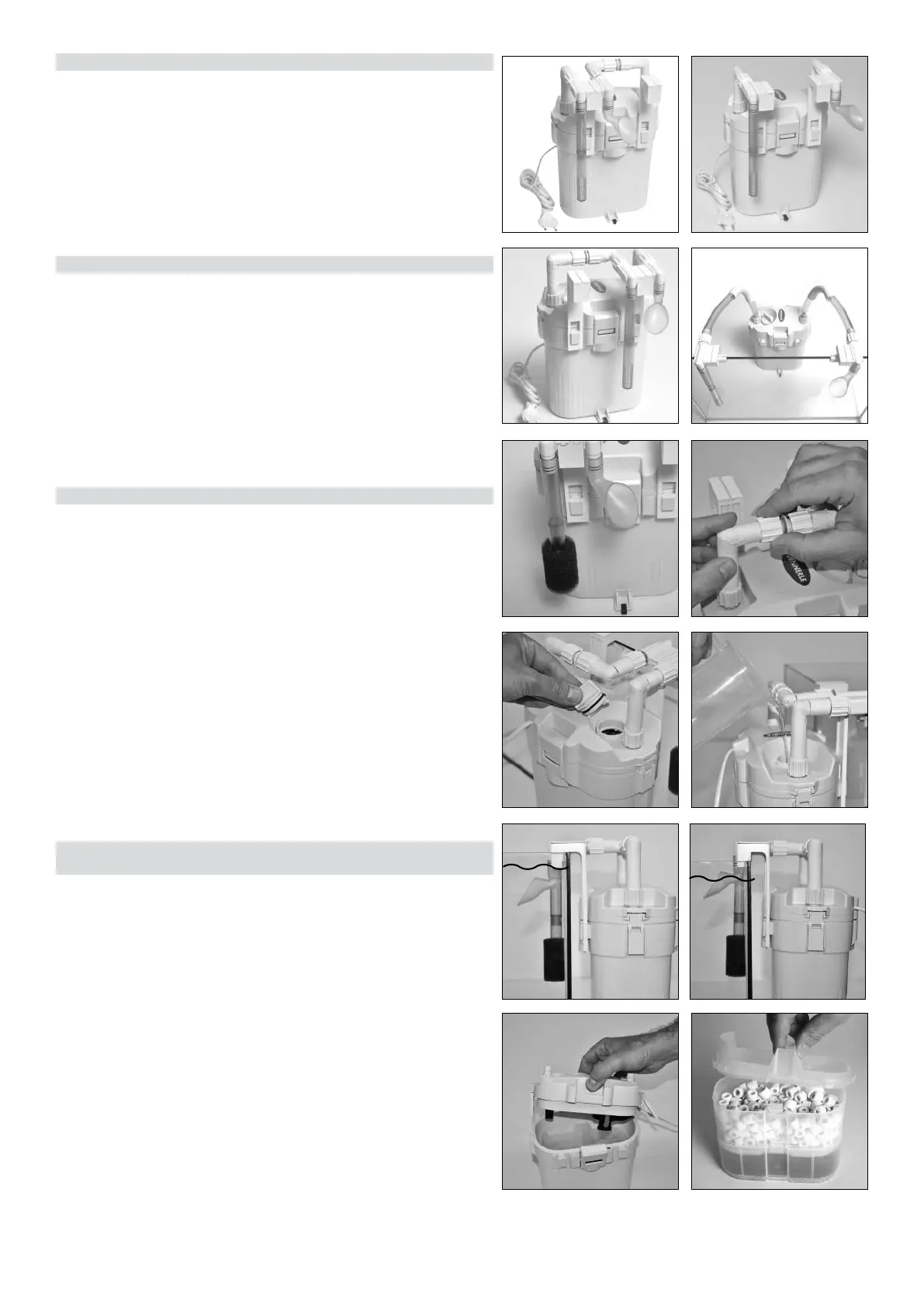 • Refill the filter completely with water. Replace and tighten the stoppers