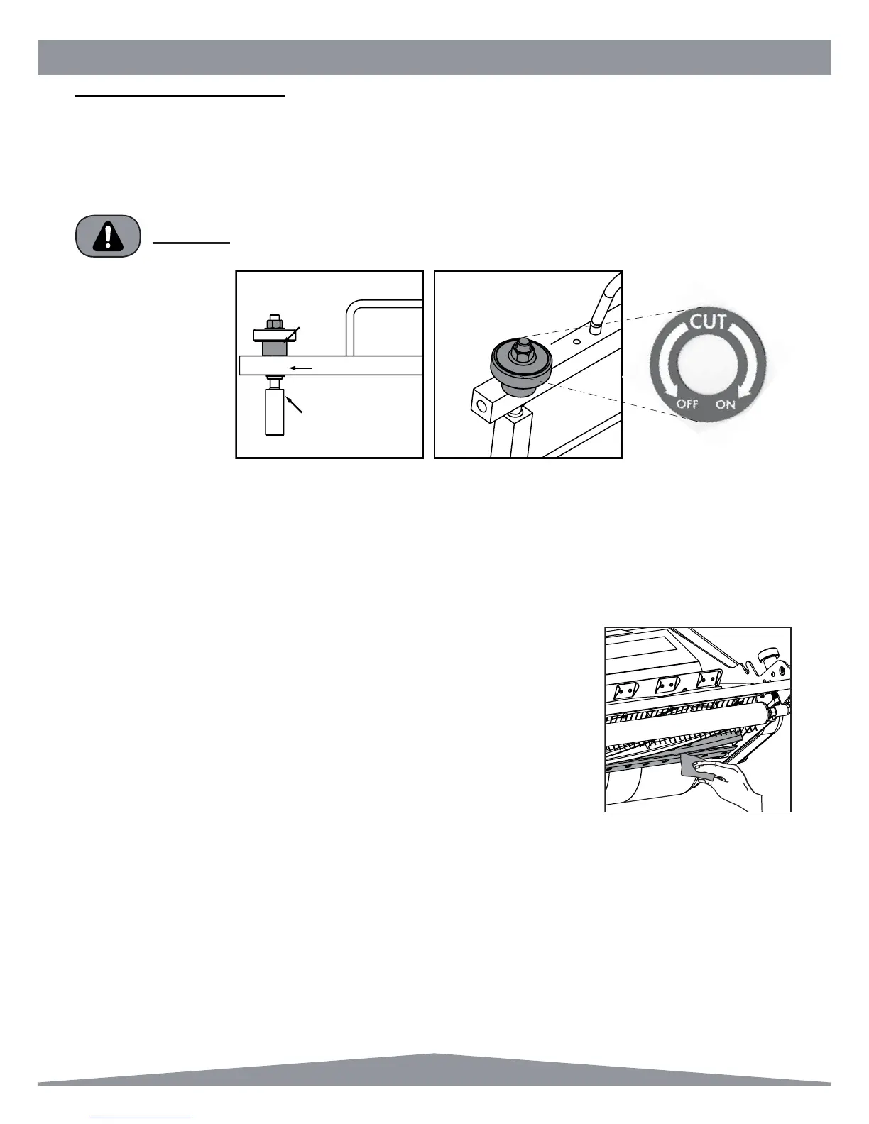 Rotate the knurled knobs to gain light contact between the shear blade and cylinder on