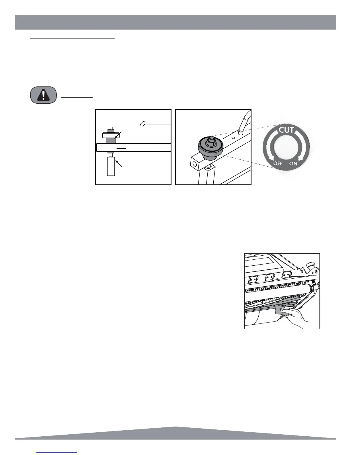 knurled knob has a decal to indicate ON or OFF cut. ON cut brings the bottom blade closer to the cylinder. OFF cut