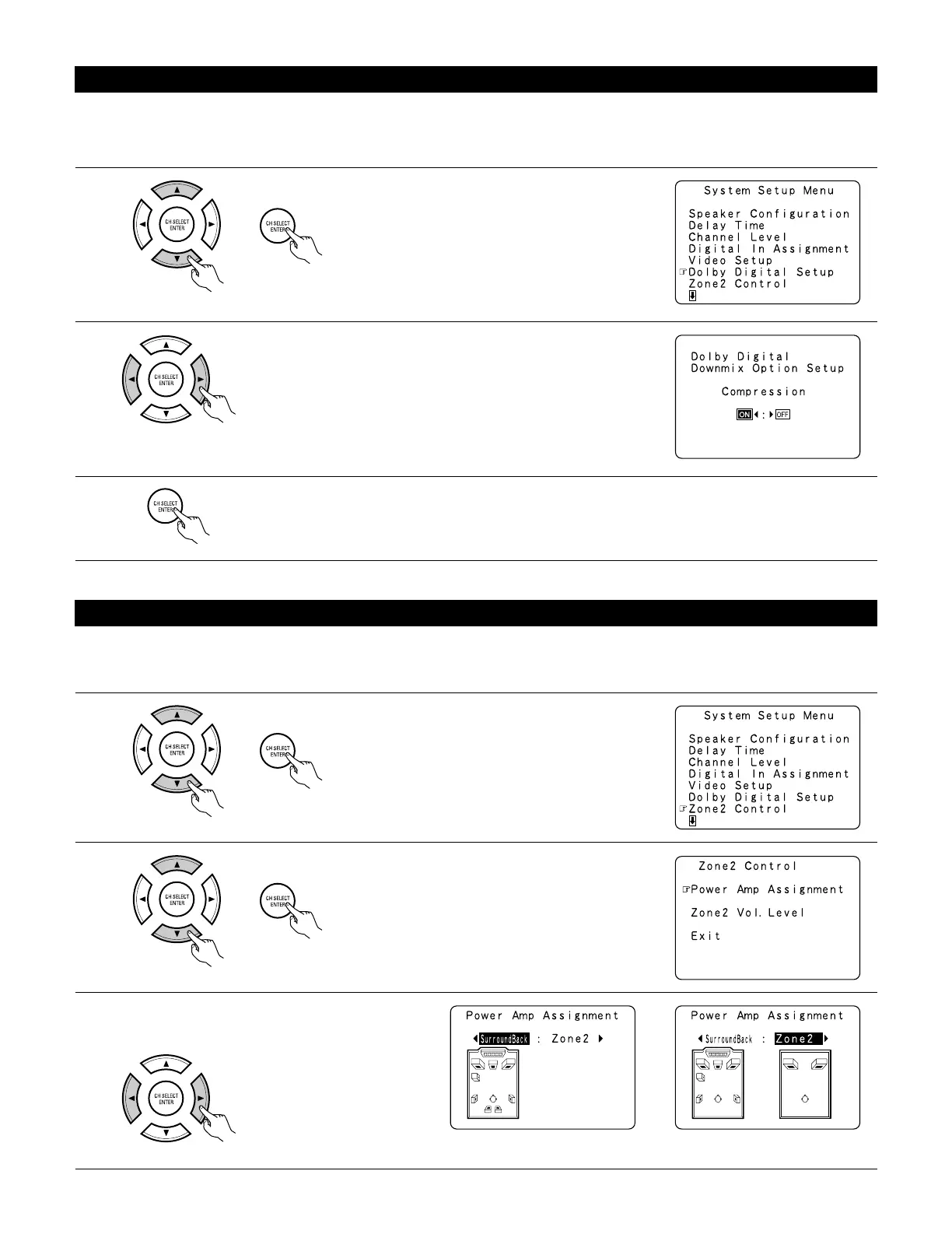 Make this setting to switch the power amplifier for the surround back channel to ZONE2.