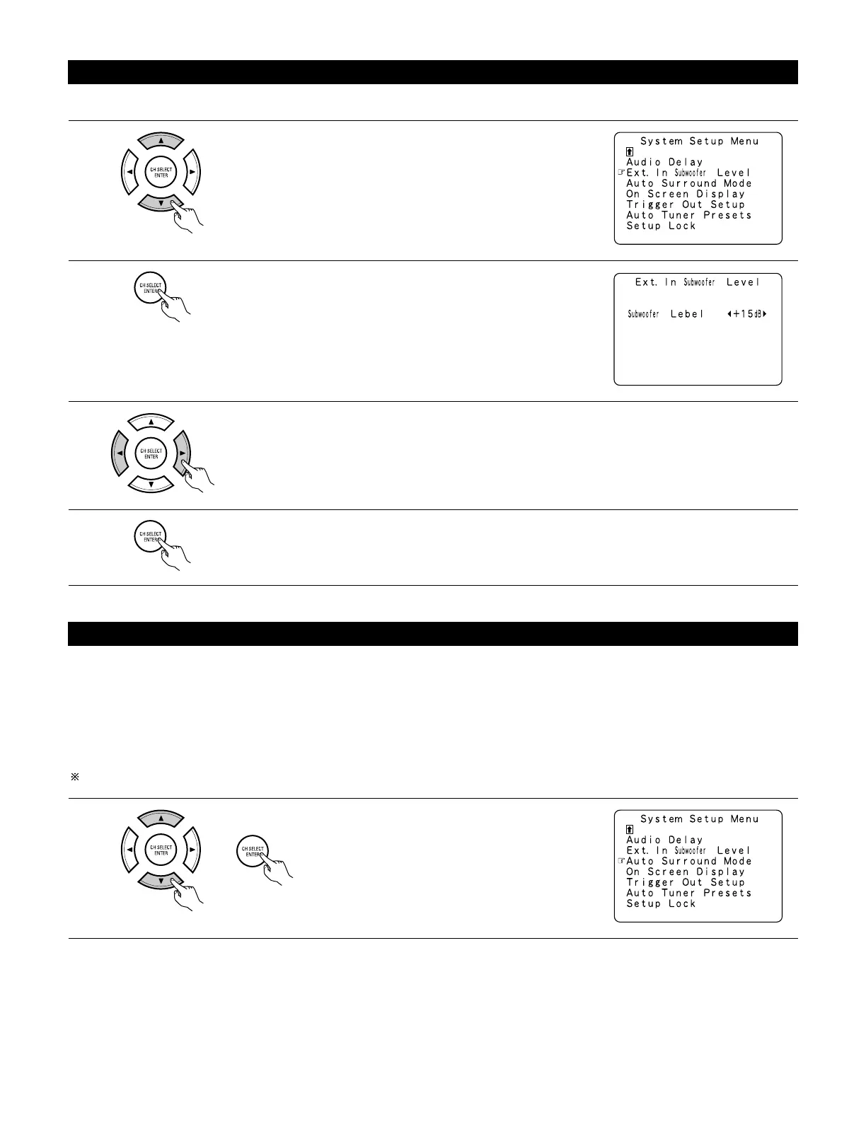 Switch to the Ext.In Subwoofer Level screen.