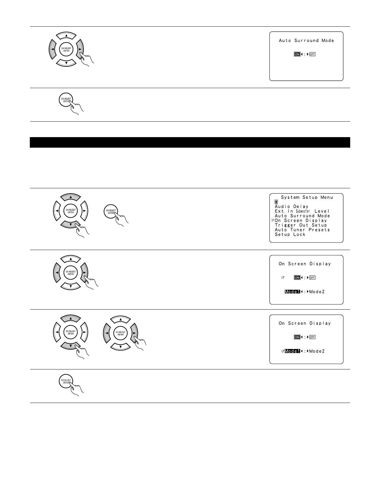 Select “ON” if you want to use the auto surround mode, “OFF” if you