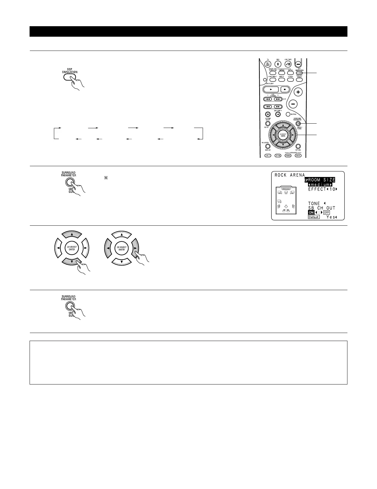 • The “ROOM SIZE” expresses the expansion effect for the different surround modes in terms of the size of the sound field, not the actual