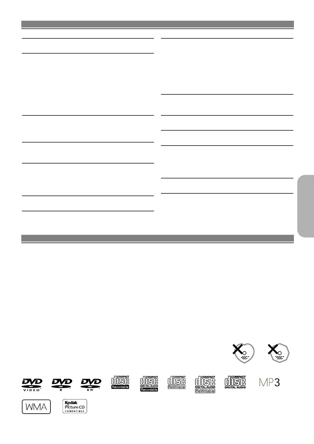 •Tenga presente que no es posible reproducir discos con formas especiales (discos con