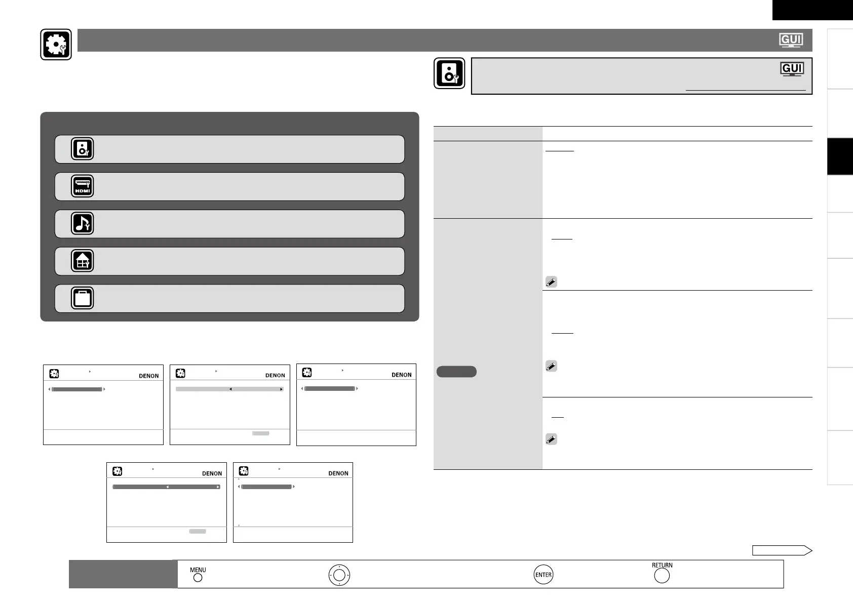 Use this procedure to change “Audyssey™ Auto Setup” settings or to change the various audio,