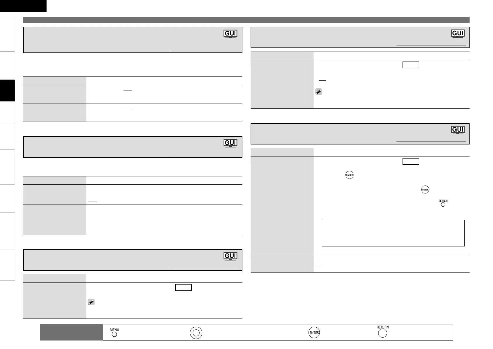 Setting items Setting contents