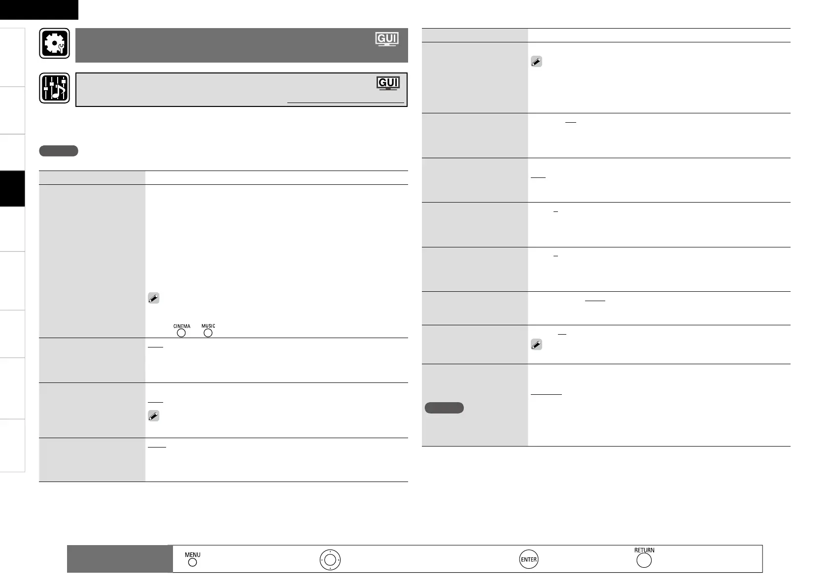 The items (parameters) that can be adjusted depend on the signal being input and the currently set surround