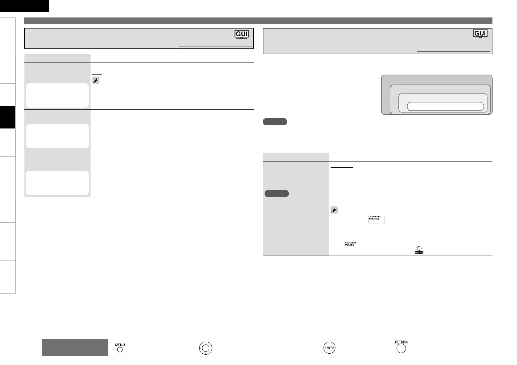 If the speaker settings are changed after “Audyssey Auto Setup” is performed, “MultEQ”, “Dynamic