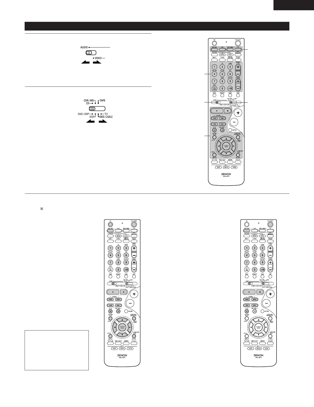 Set the AUDIO side for the CD, tape deck or CDR/MD