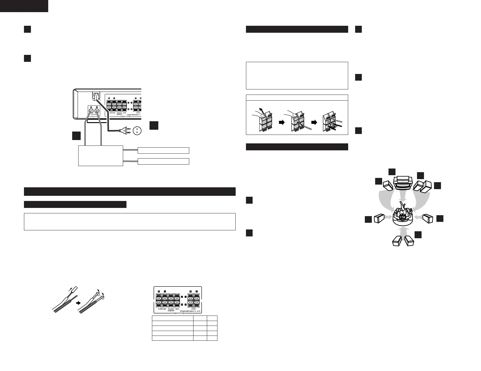• Prepare the speaker cords for connection by stripping off approximately 10 mm or less (no more as this could