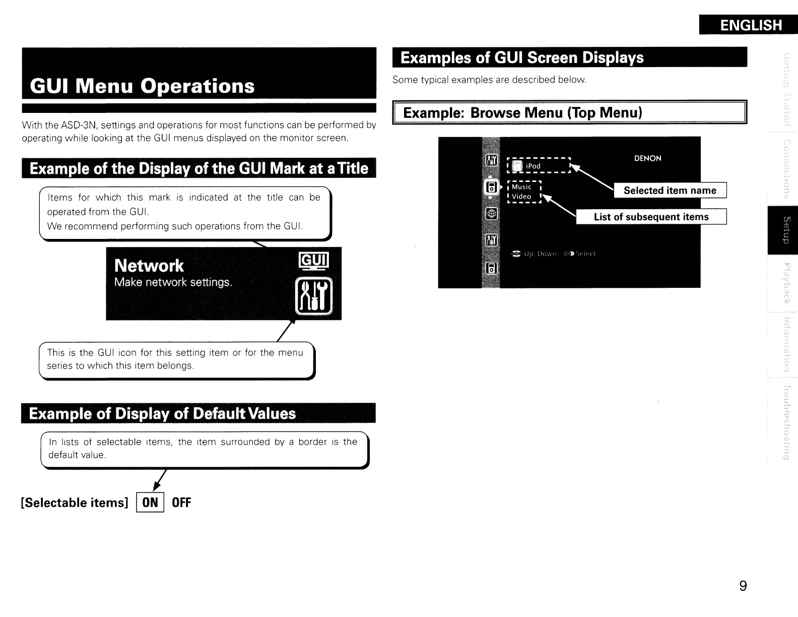 With the ASD-3N, settings and operations for most functions