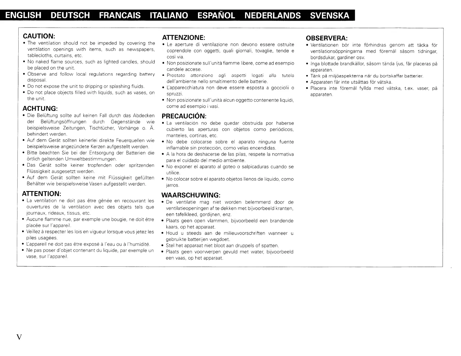 • Apparaten far inte utsattas for vatska.