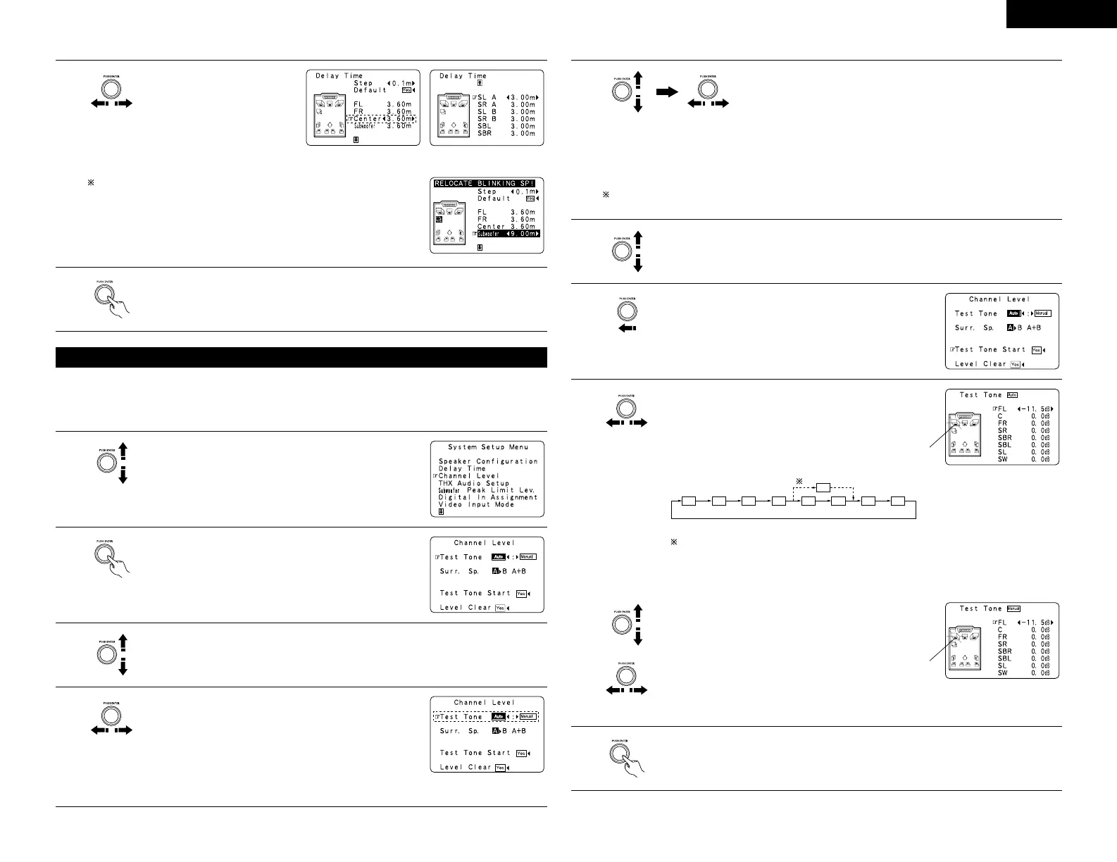 • From the listening position, listen to the test tones produced from the speakers to adjust the level.