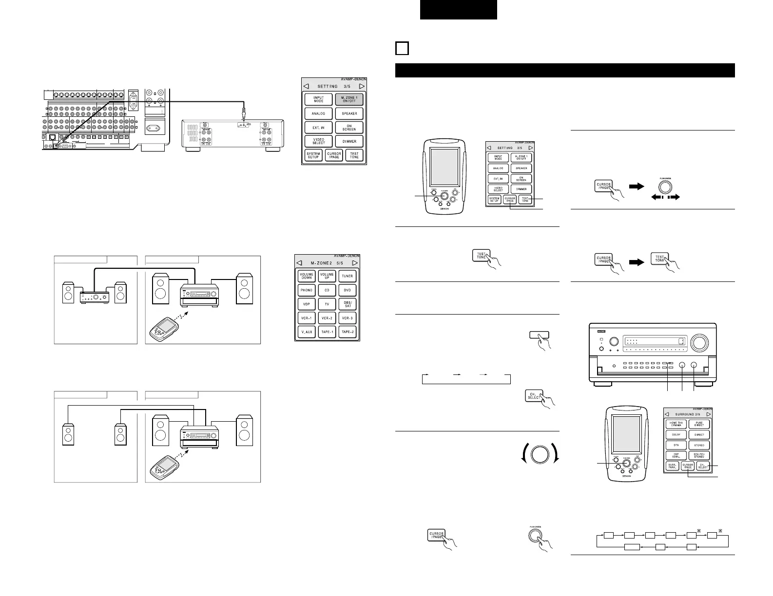 • Stel alvorens weer te geven met de surroundfunctie met behulp van de testtonen het weergaveniveau van de