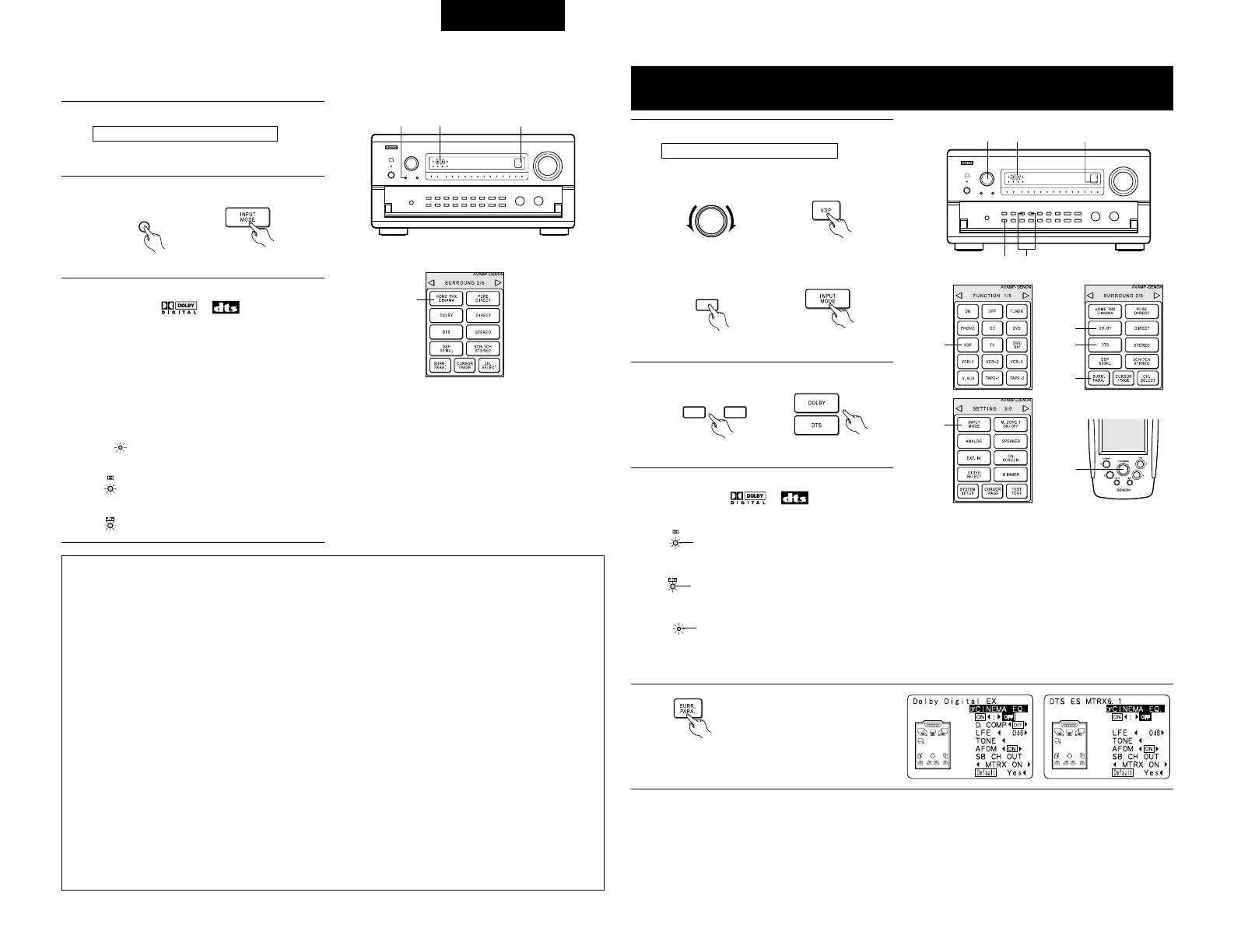 Dolby Digital-stand (alleen met digitale ingang) en DTS Surround (alleen met