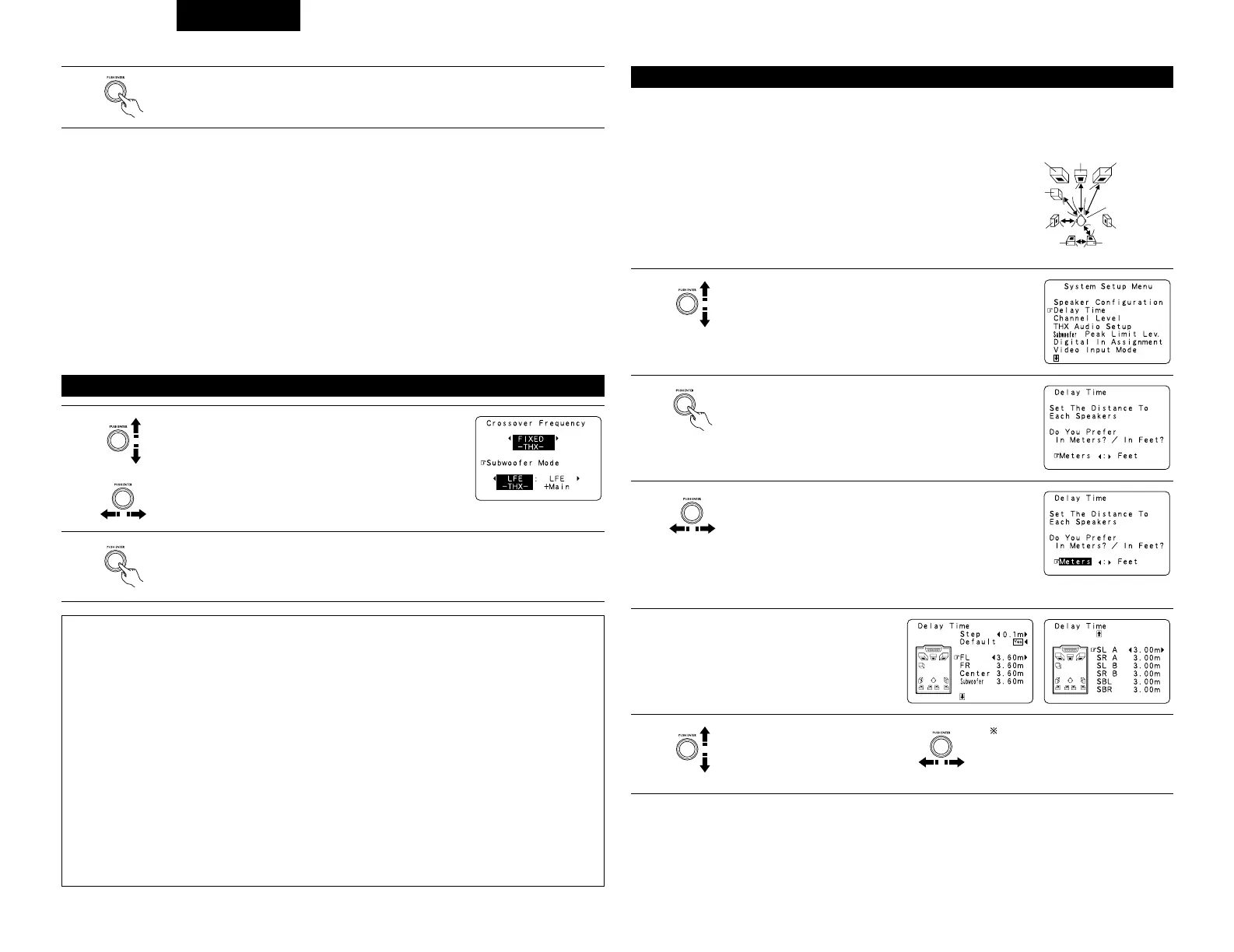 • Entrer la distance entre la position d’écoute et les différentes enceintes pour régler le temps de retard du