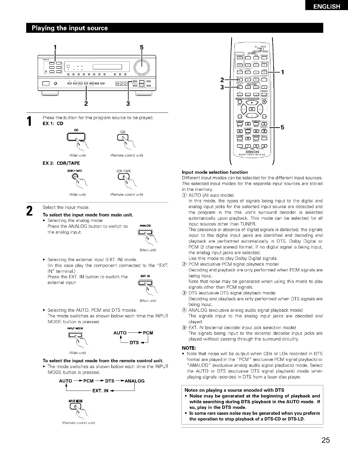 • Selecting the AUTO, PCM and DTS modes