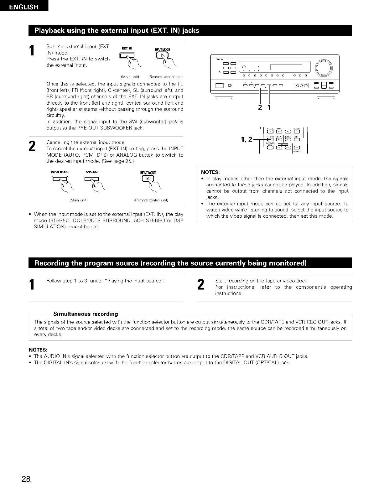 SR (surround right) channels of the EXT [N jacks are output