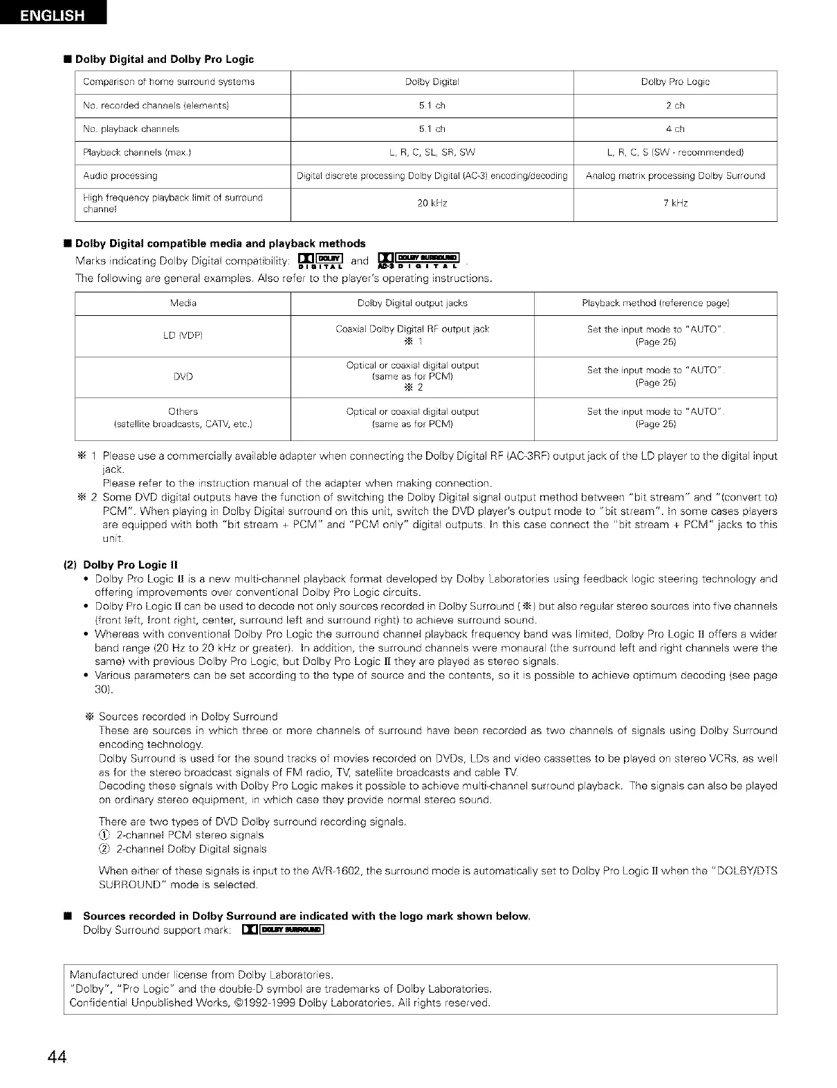 Dolby Surround support mark: I'!"1 [_ _,R_wl I